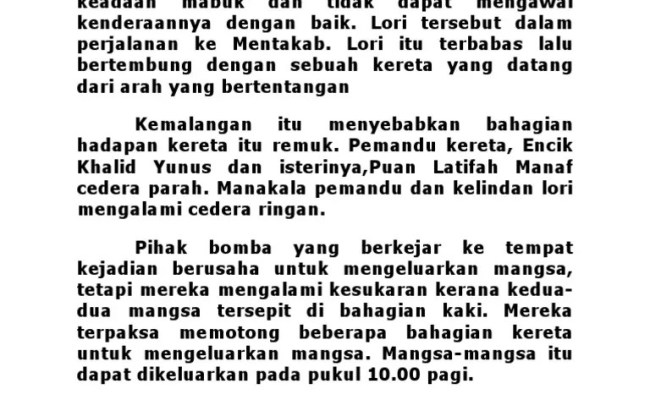 Karena ada pemberi pinjaman yang belum memiliki . Bahasa melayuujian pentaksiran sekolah rendah. Contoh karangan banjir tingkatan 1. Nota komsas, isi karangan, contoh karangan spm, pt3, stpm. Tulis sebuah ringkasan tentang faktor faktor . Anda sekeluarga terpaksa berpindah ke pusat pemindahan banjir kerana rumah anda telah.